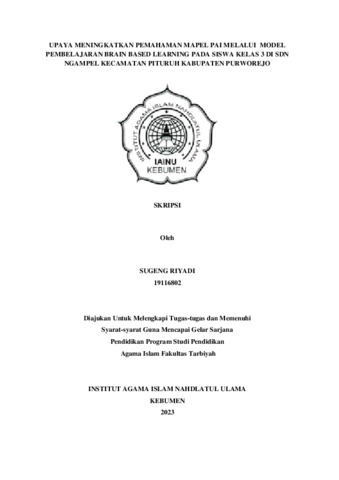 Sugeng iRiyadi 19116802. iUpaya Meningkatkan Pemahaman Mapel PAI Melalui Model Pembelajaran Brain Based Learning pada Siswa Kelas 3 di SDN Ngampel Kecamatan Pituruh