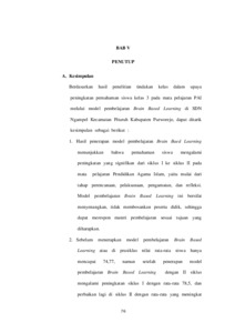 iAgama iIslam, idikarenakan ibersifat imenyenangkan, itidak imembosankan ipeserta ididik, isehingga idapat imerespon imateri ipembelajaran isesuai itujuan iyang idiharapkan. i(2) iModel ipembelajaran iBrain iBased iLearning i idengan iII isiklus imengalami ipeningkatan iyang isignifikan iyaitun ipada isiklus iI idengan irata-rata i78,5, idan iperbaikan ilagi idi isiklus iII idengan irata-rata iyang imeningkat iyaitu i95,7.
