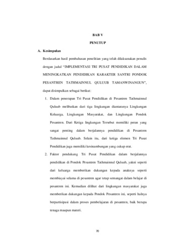 Tamanwinangun. Tujuan tujuan dari penelitian ini adalah untuk mengetahui 1.) Mengetahui Implementasi Tri pusat Pendidikan dalam mendukung pembelajaran santri di