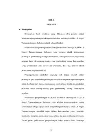 Siti Nur Khasanah, 1913184. Manajemen Pengembangan Bakat pada Disabilitas Tunarungu di SMA LB Negeri Tamanwinangun Kebumen. Latar belakang penelitian ini adalah SMA LB Negeri Tamanwinangun merupakan satu-satunya sekolah negeri luar biasa di kabupaten kebumen yang memiliki tujuh bidang keterampilan untuk meng-cover pengembangan bakat peserta didik yang berkebutuhan khusus. Tujuan dari penelitian ini adalah untuk mengetahui manajemen pengembangan bakat mulai dari proses perencanaan, proses pelaksanaan, dan proses evaluasi dalam pengembangan bakat peserta didik